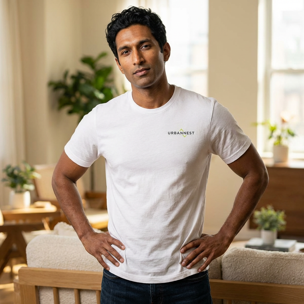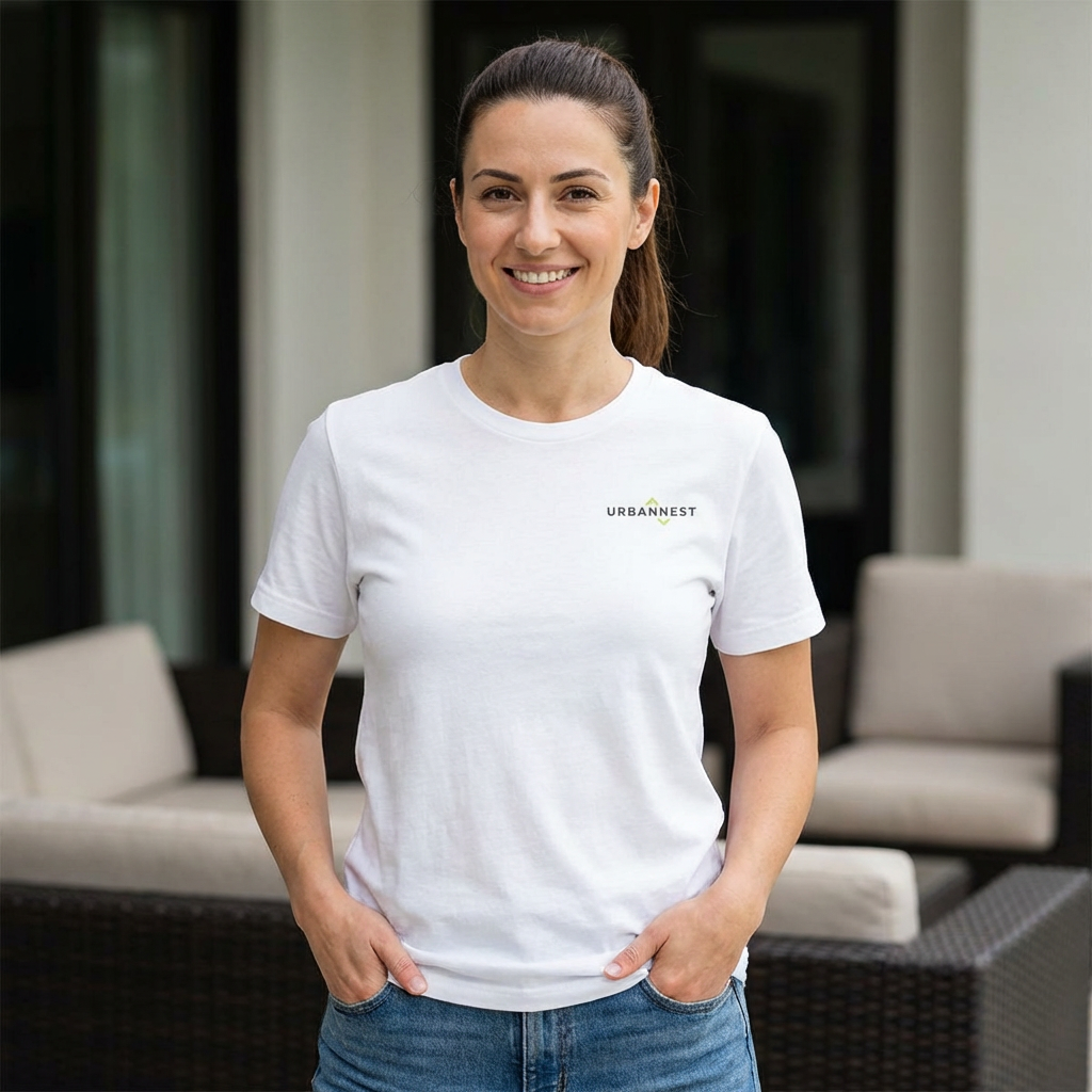 White Cotton Crew T‑Shirt with "UrbanNest' Chest Logo