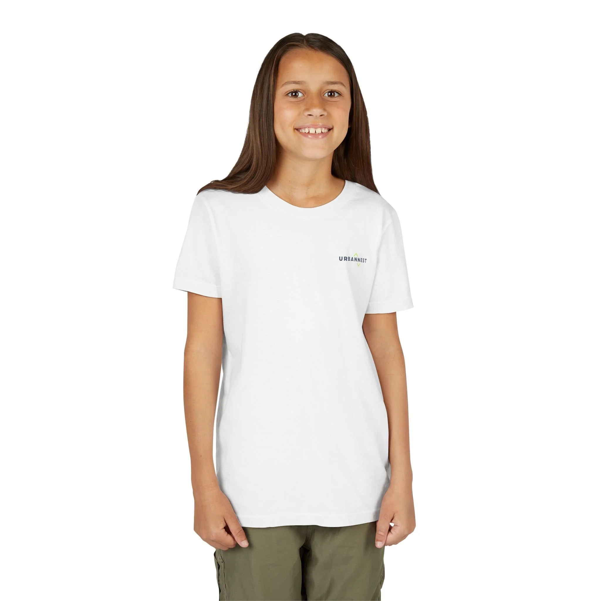 A lightweight youth tee that feels like a second skin — soft, breathable, and cut with a clean retail fit. The minimal chest print keeps the look understated and modern, so kids can wear it layered or on its own without fuss. The fabric is airlume-combed, ring-spun cotton for exceptional softness and a smooth surface that holds DTG prints beautifully. Thoughtful details like side seams, shoulder tape, and a ribbed crew collar help the tee keep its shape through play and washes. Tear-away inner label and DTF neck print keep the neckline comfortable. A responsibly made basic that blends everyday comfort with a low-key, urban aesthetic.